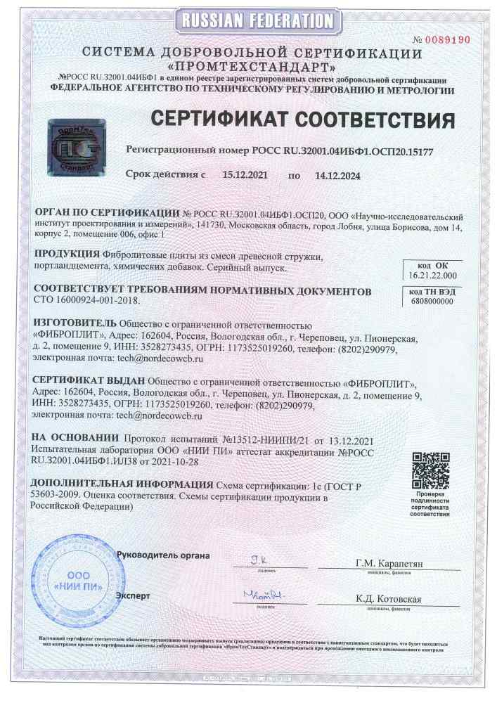 Фибролитовая плита Nordeco ФП 570-25С 3000х600х25 повышенной плотности на сером цементе