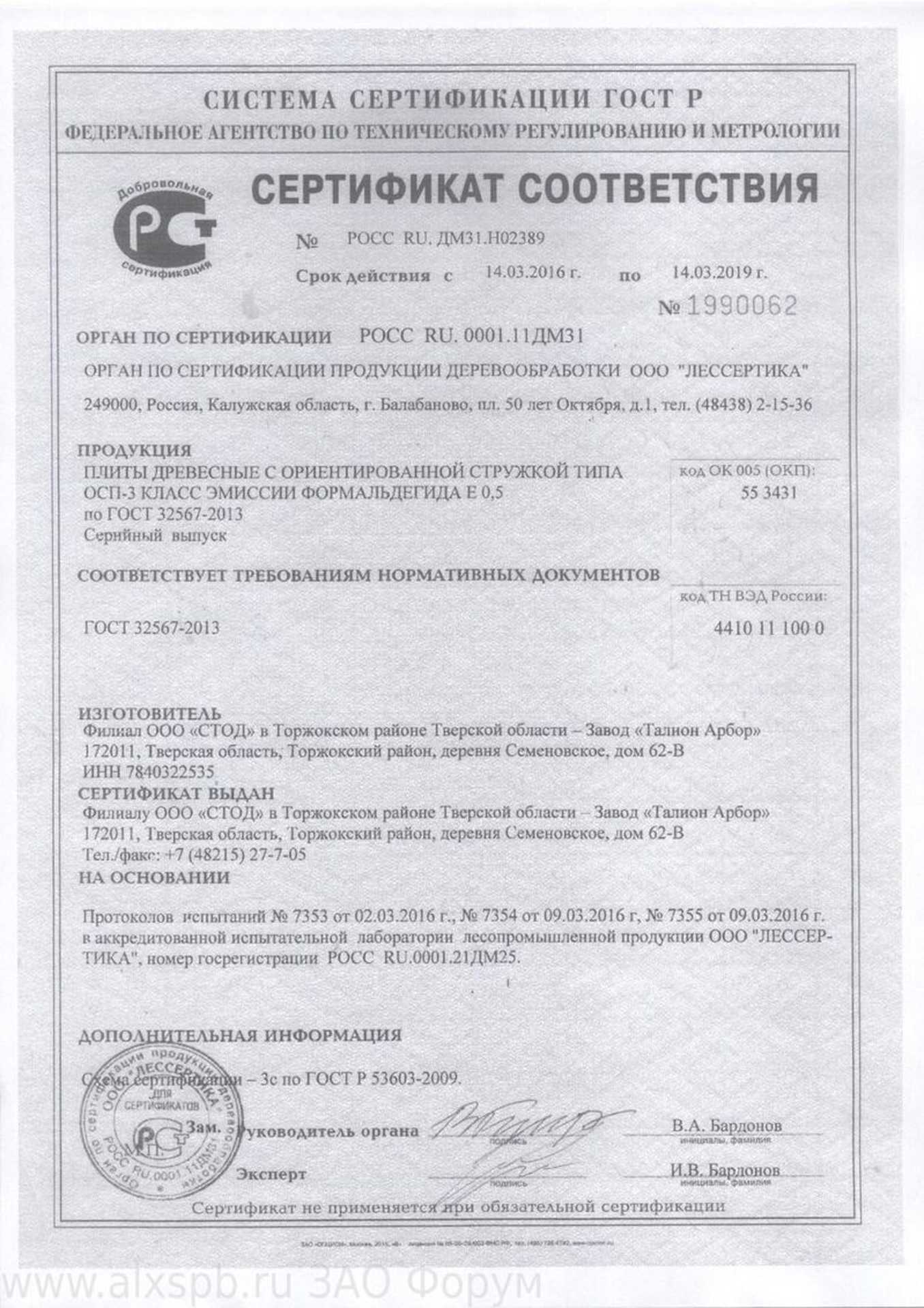 Плита OSB-3 (ОСП) Талион (Ультралам) 15х1250х2500 мм